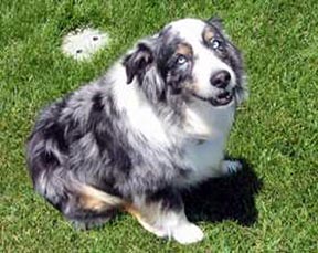 I happened to find a young blue merle male Aussie on Southern California Aussie Rescue web site, and he was at a foster home in San Diego. So I immediately phoned his foster home to schedule a visit. His foster mom, Nan, told me he was very mellow, fine with cats and he had a very good doggie manner. She thought he would be fine with me (I never really had a prior experience owning a dog!) When I went to visit him, I loved the way he glued himself to me and looking very excited to see me, so right there and then, I decided he needed to be MY Aussie.