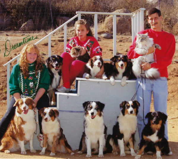 In the 1980’s she joined the Australian Shepherd Club of Southern California. Karyl, her husband Mark and their daughter, Nikole, loved going to the Aussie Club dog shows and showing their Aussies in Conformation. The family always pitched in to help work at the shows and Nikole showed in Junior Showmanship, even as a very young child. Karyl occasionally bred a litter of puppies under their kennel name, “Dreamtime”, raised them with love and care, and placed the pups in great homes.